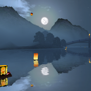 Festival de los Faroles en 3D - muy hermoso fondo de pantalla en vivo en el estilo japonés.Faroles japoneses del festival. Noche, luna llena. Linternas pueden ir poco a poco en barco o flotan en el aire, su número puede ser independientemente regulirovta. Parece maravilloso en pantallas que van de 7 pulgadas.